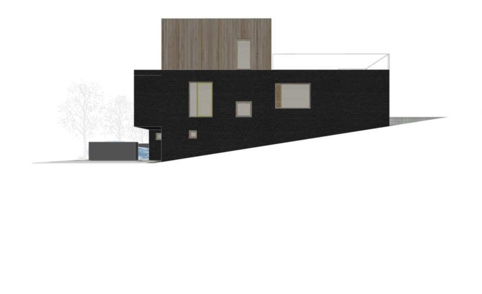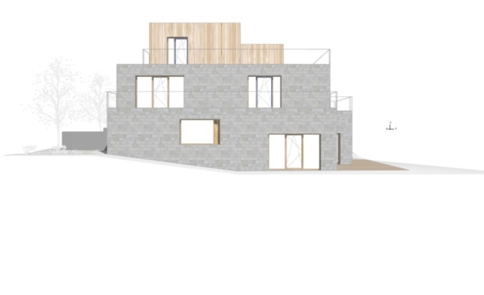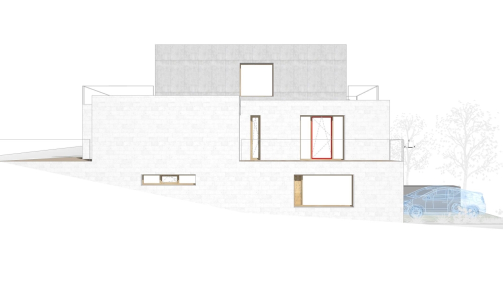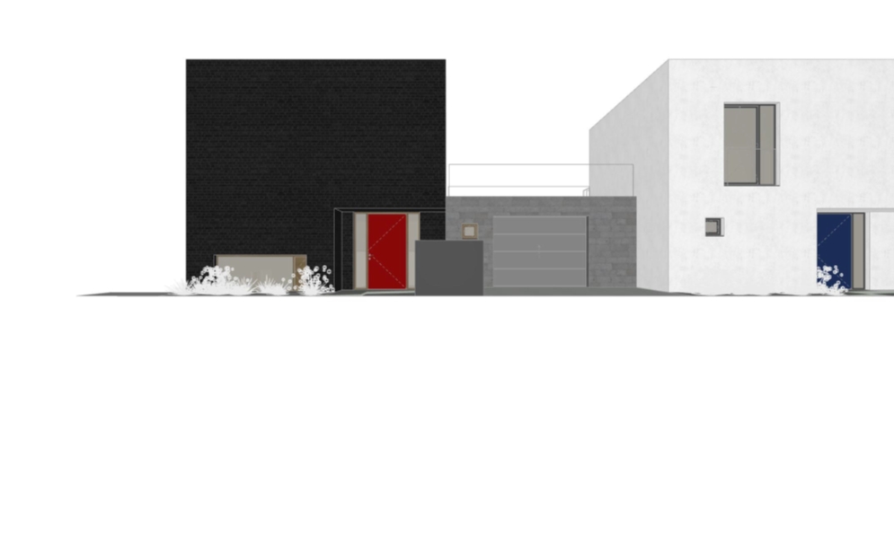 - materiálové řešení a řešení poloveřejného prostoru před domem