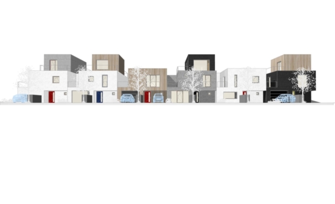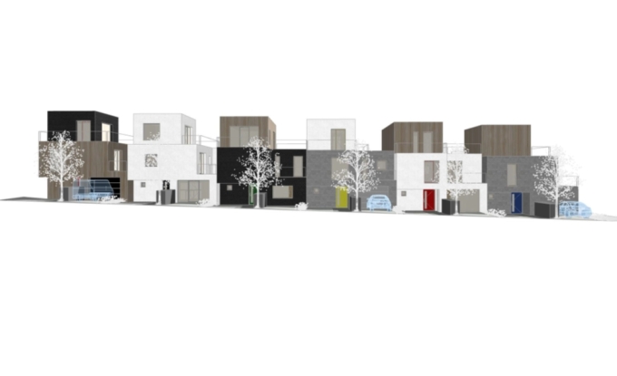 Každý, jednotlivý řadový dům je možné umístit na parcelu pouze v souladu s regulačním plánem, a to jak pozičně, tak výškově a rozměrově. Jednotlivé řadové domy na sebe přímo navazují.